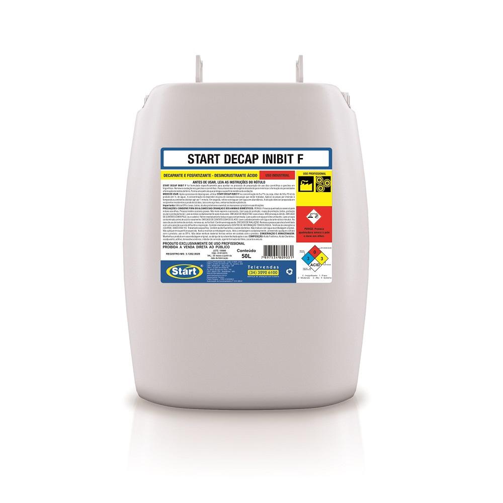 Decap inibit F - LIMPEZA MANUAL: Após o processo de desengorduramento, utilize START DECAP INIBIT F diluído de 5 a 10% (dilua de 50 a 100 mL de START DECAP INIBIT F em 1L de água). Aplicar as peças por imersão à temperatura ambiente e deixar agir por 1 minuto. Em seguida, retirar e enxaguar com água em abundância. A solução deve ser preparada em recipientes resistentes a produtos ácido, tais como aço inox, emborrachados e plásticos.